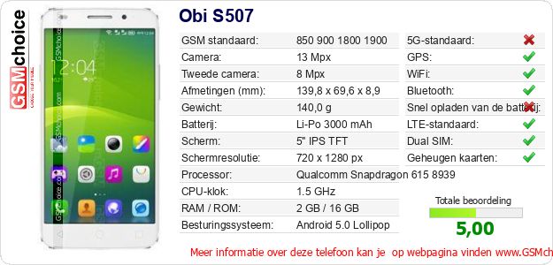 Gegevens van de telefoon Obi S507 op jouw webpagina