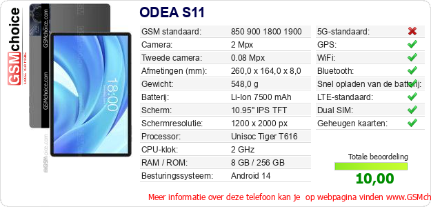 Gegevens van de telefoon ODEA S11 op jouw webpagina