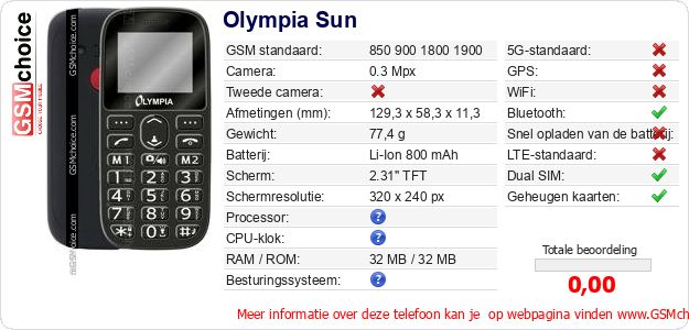 Gegevens van de telefoon Olympia Sun op jouw webpagina