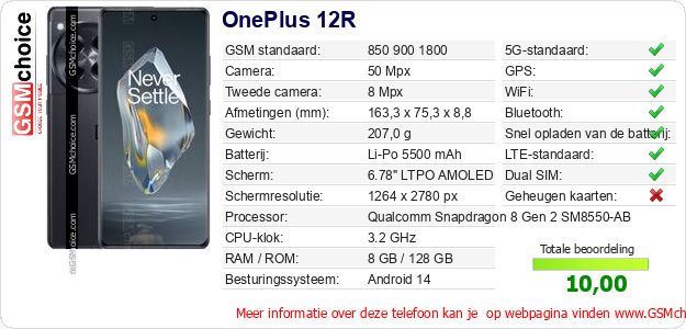 Gegevens van de telefoon OnePlus 12R op jouw webpagina