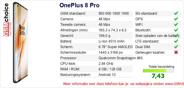 Gegevens van de telefoon OnePlus 8 Pro op jouw webpagina