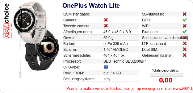 Gegevens van de telefoon OnePlus Watch Lite op jouw webpagina