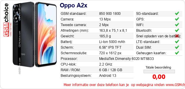 Gegevens van de telefoon Oppo A2x op jouw webpagina