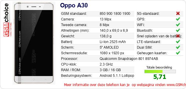 Gegevens van de telefoon Oppo A30 op jouw webpagina