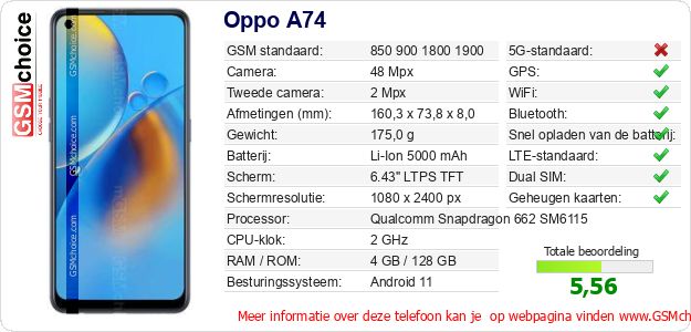 Gegevens van de telefoon Oppo A74 op jouw webpagina