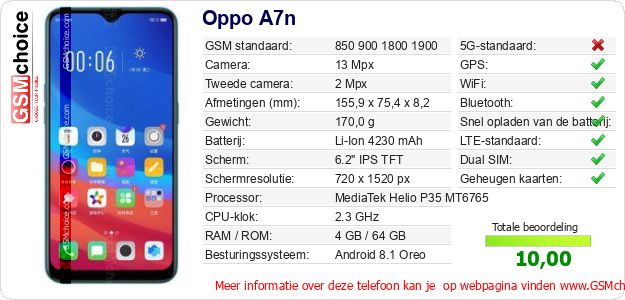 Gegevens van de telefoon Oppo A7n op jouw webpagina