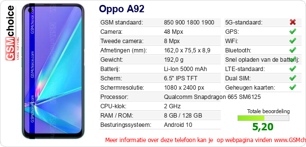 Gegevens van de telefoon Oppo A92 op jouw webpagina