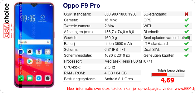 Gegevens van de telefoon Oppo F9 Pro op jouw webpagina