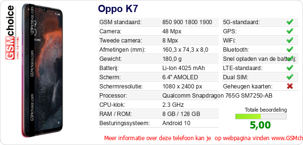 Gegevens van de telefoon Oppo K7 op jouw webpagina