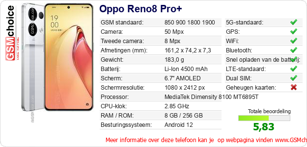 Gegevens van de telefoon Oppo Reno8 Pro+ op jouw webpagina