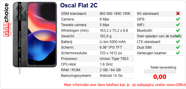 Gegevens van de telefoon Oscal Flat 2C op jouw webpagina