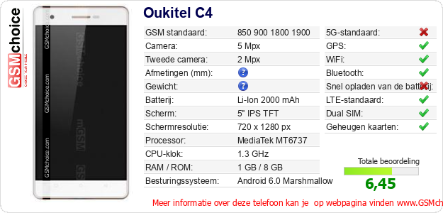 Verkoop je op ebay.com? Heb je jouw eigen webpagina? Als je de basisgegevens over Oukitel C4 ergens wilt publiceren, dan is het heel simpel. Het is voldoende om deze code te kopiëren en op jouw webpagina te plakken:Als je deze code plakt, dan wordt de onderstaande afbeelding getoond: