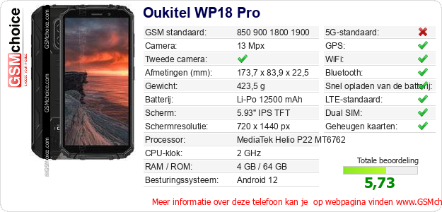 Verkoop je op ebay.com? Heb je jouw eigen webpagina? Als je de basisgegevens over Oukitel WP18 Pro ergens wilt publiceren, dan is het heel simpel. Het is voldoende om deze code te kopiëren en op jouw webpagina te plakken:Als je deze code plakt, dan wordt de onderstaande afbeelding getoond: