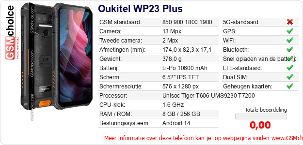 Gegevens van de telefoon Oukitel WP23 Plus op jouw webpagina