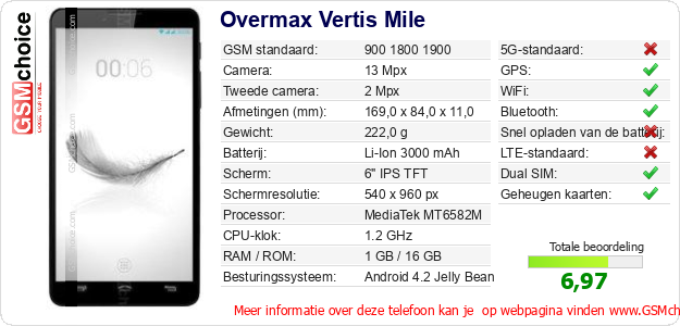 Gegevens van de telefoon Overmax Vertis Mile op jouw webpagina
