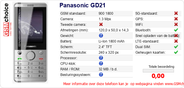 Gegevens van de telefoon Panasonic GD21 op jouw webpagina