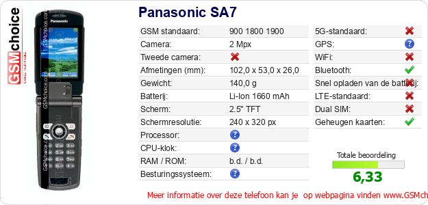 Gegevens van de telefoon Panasonic SA7 op jouw webpagina