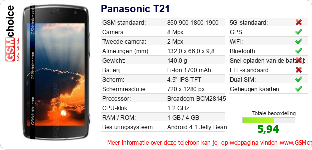 Gegevens van de telefoon Panasonic T21 op jouw webpagina