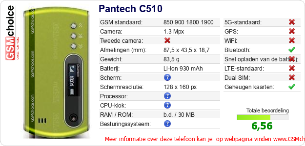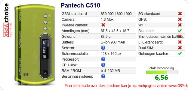 Gegevens van de telefoon Pantech C510 op jouw webpagina