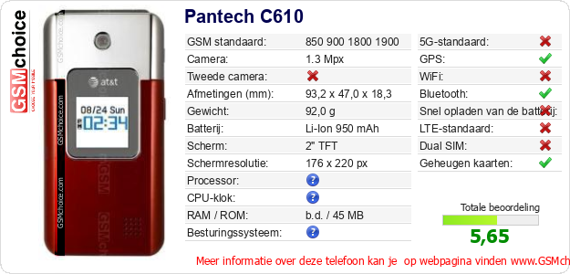 Gegevens van de telefoon Pantech C610 op jouw webpagina