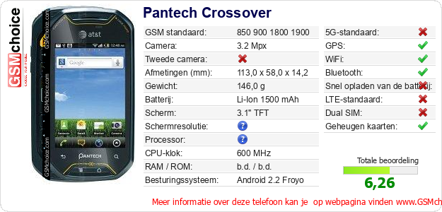 Gegevens van de telefoon Pantech Crossover op jouw webpagina