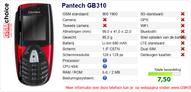 Gegevens van de telefoon Pantech GB310 op jouw webpagina