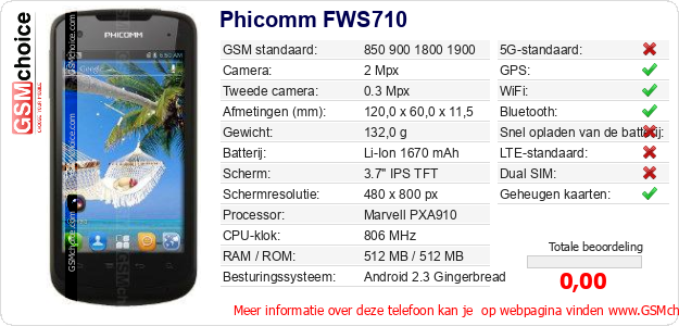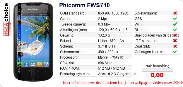 Gegevens van de telefoon Phicomm FWS710 op jouw webpagina