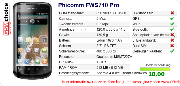Gegevens van de telefoon Phicomm FWS710 Pro op jouw webpagina