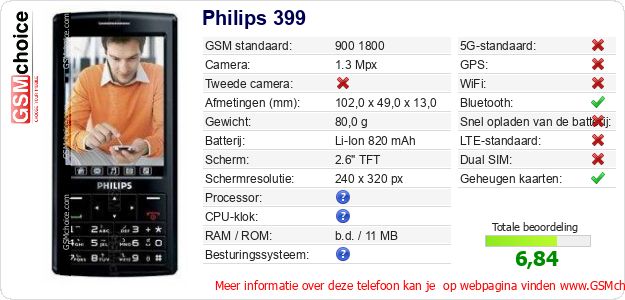 Gegevens van de telefoon Philips 399 op jouw webpagina