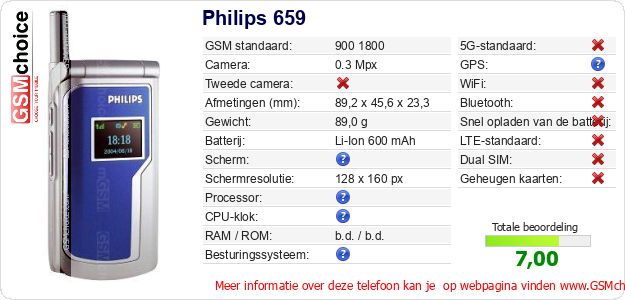 Gegevens van de telefoon Philips 659 op jouw webpagina