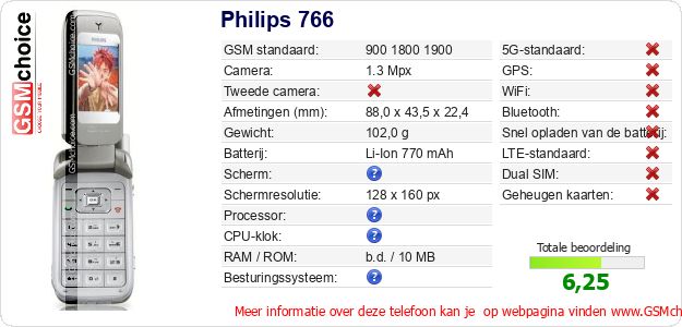 Gegevens van de telefoon Philips 766 op jouw webpagina