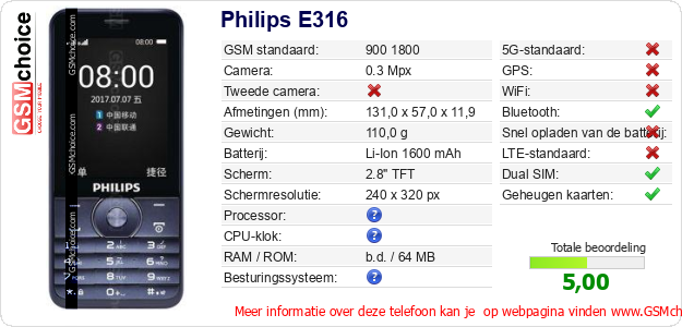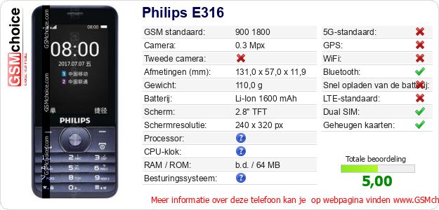 Gegevens van de telefoon Philips E316 op jouw webpagina