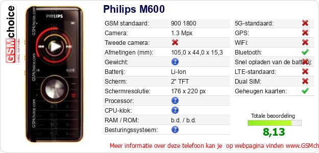 Gegevens van de telefoon Philips M600 op jouw webpagina