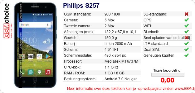 Gegevens van de telefoon Philips S257 op jouw webpagina