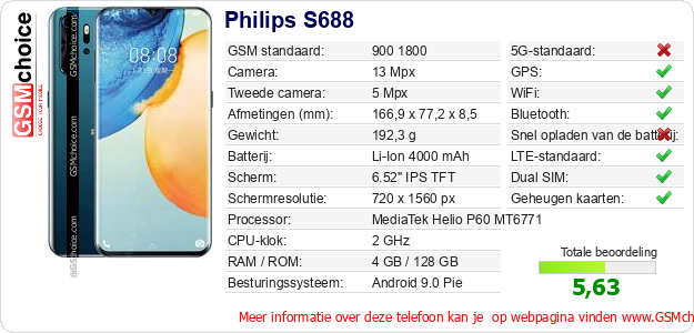 Gegevens van de telefoon Philips S688 op jouw webpagina