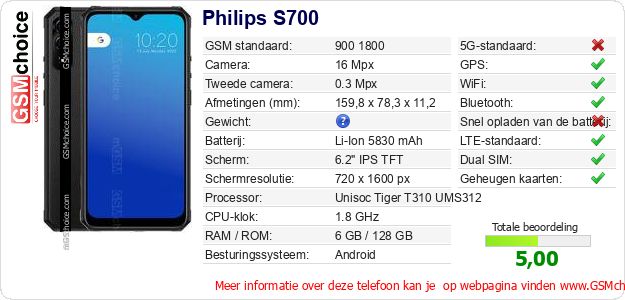 Gegevens van de telefoon Philips S700 op jouw webpagina