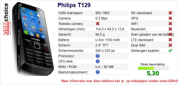 Gegevens van de telefoon Philips T129 op jouw webpagina