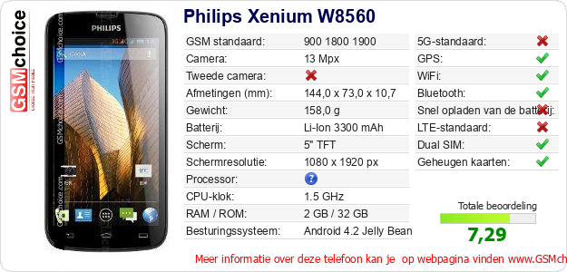 Gegevens van de telefoon Philips Xenium W8560 op jouw webpagina