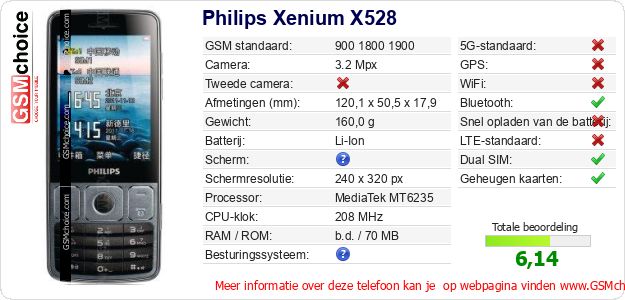 Gegevens van de telefoon Philips Xenium X528 op jouw webpagina