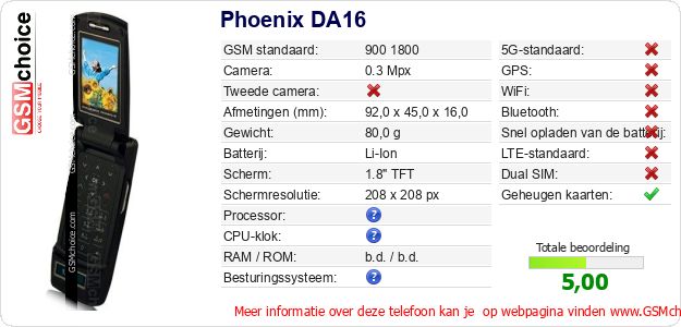 Gegevens van de telefoon Phoenix DA16 op jouw webpagina