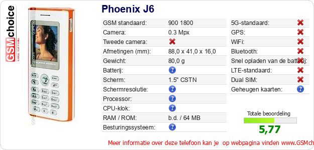 Gegevens van de telefoon Phoenix J6 op jouw webpagina