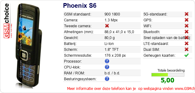 Gegevens van de telefoon Phoenix S6 op jouw webpagina
