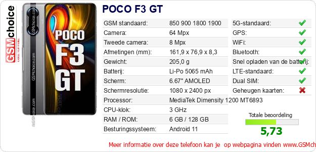Gegevens van de telefoon POCO F3 GT op jouw webpagina