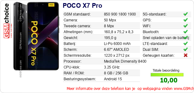 Gegevens van de telefoon POCO X7 Pro op jouw webpagina