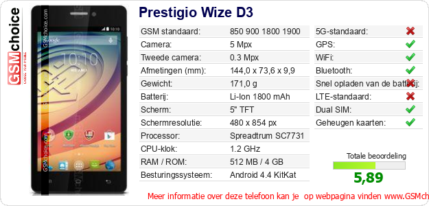 Gegevens van de telefoon Prestigio Wize D3 op jouw webpagina