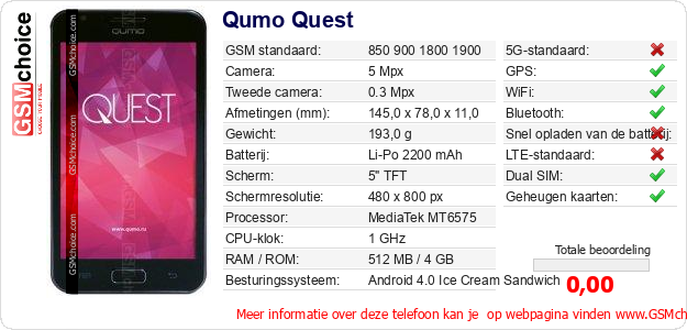 Gegevens van de telefoon Qumo Quest op jouw webpagina