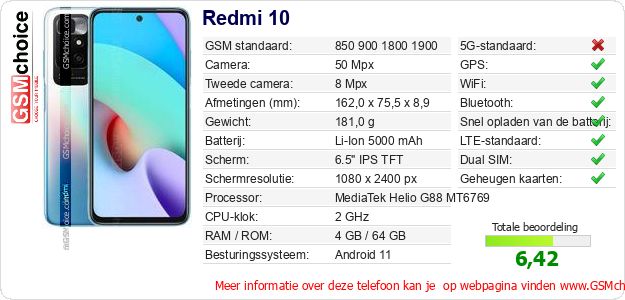 Verkoop je op ebay.com? Heb je jouw eigen webpagina? Als je de basisgegevens over Redmi 10 ergens wilt publiceren, dan is het heel simpel. Het is voldoende om deze code te kopiëren en op jouw webpagina te plakken:Als je deze code plakt, dan wordt de onderstaande afbeelding getoond: