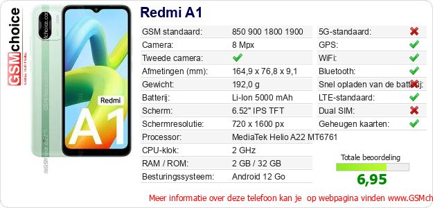 Gegevens van de telefoon Redmi A1 op jouw webpagina