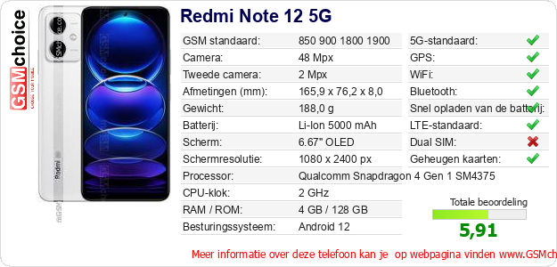 Gegevens van de telefoon Redmi Note 12 5G op jouw webpagina