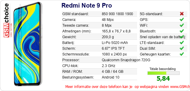 Gegevens van de telefoon Redmi Note 9 Pro op jouw webpagina